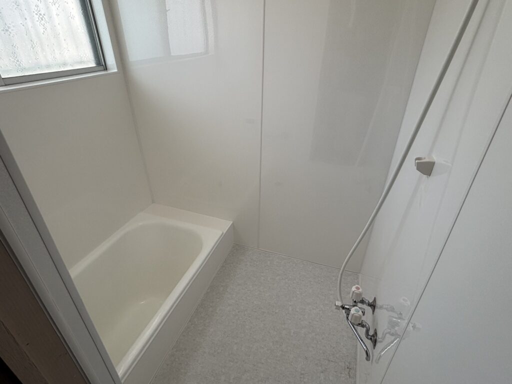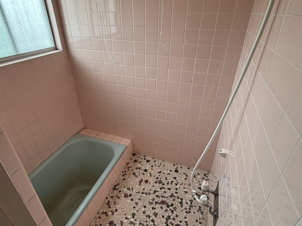 奈良県奈良市でタイル風呂(在来浴室)の改修工事(リニューアル工事)をおこないました。築年数が経ち、タイル壁のひび割れや、ホーロー浴槽の欠けや落ちない汚れが気になる状態でした。解体してユニットバスにリフォームをすると費用が高額になるため、「見た目をきれいにしたいが、なるべく安くしたい」というご要望をいただきました。浴槽は下地処理をしっかり行った上で、浴槽専用塗装で再生し、劣化の激しい壁面はパネル貼りを採用。床は滑りにくくひんやりしない床材を貼り、安全面も考慮しました。塗装とパネルを組み合わせることで、ユニットバス入れ替えと比べて、約2分の1の費用で明るく清潔感のある仕上がりを実現しました。
