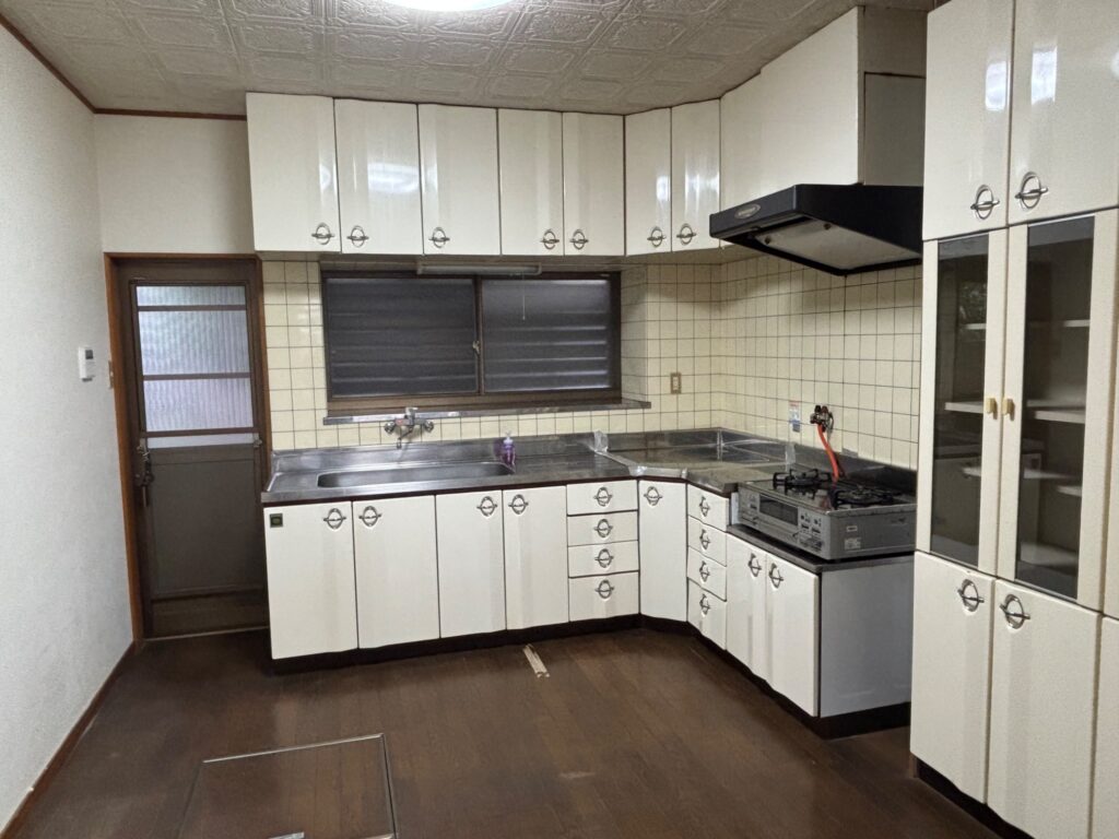 L型キッチンからI型キッチンへのリフォーム事例紹介です。以前はL型キッチンが設置されており、収納量はあるものの動線が複雑で、作業スペースが分断されていました。コーナー部分は使いづらく、物の出し入れもしにくい状態。また、キッチンが空間を大きく占めてしまい、ダイニング全体に圧迫感がありました。今回の計画でレイアウトを見直し、L型キッチンからシンプルなI型システムキッチンへ変更。壁付け一直線の配置にすることで、空間にゆとりが生まれ、キッチンまわりがすっきりとした印象になりました。新しいキッチンは引き出し収納を中心とし、奥まで見渡せて取り出しやすい仕様に。さらに壁面にはキッチンパネルを施工し、油汚れや水ハネも簡単にお手入れできるようになっています。吊戸棚とレンジフードも一新し、明るく清潔感のある空間へ。